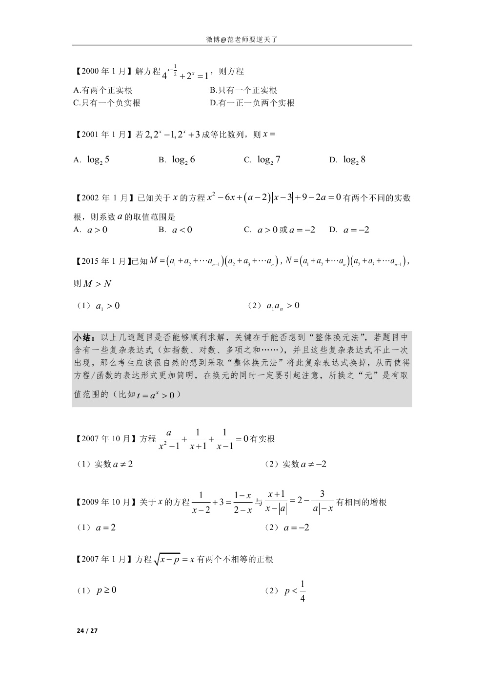 1997-2015管理类联考真题模块化归类详解(函数方程不等式部分无解析版)(24)