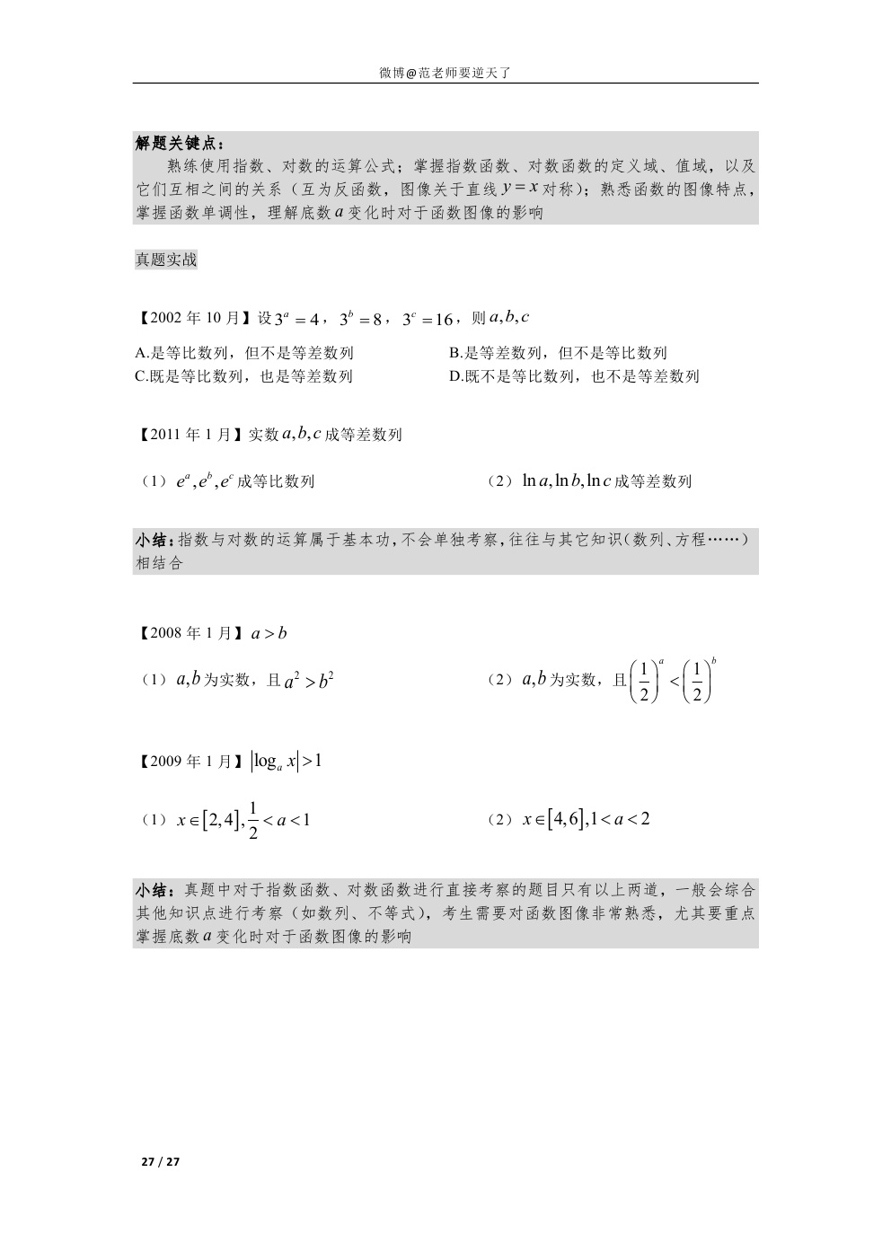 1997-2015管理类联考真题模块化归类详解(函数方程不等式部分无解析版)(27)