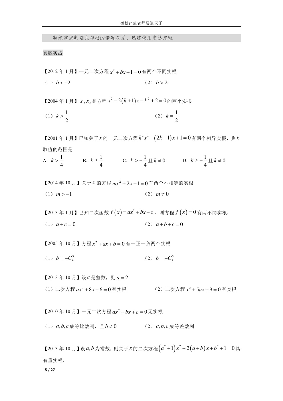 1997-2015管理类联考真题模块化归类详解(函数方程不等式部分无解析版)(5)