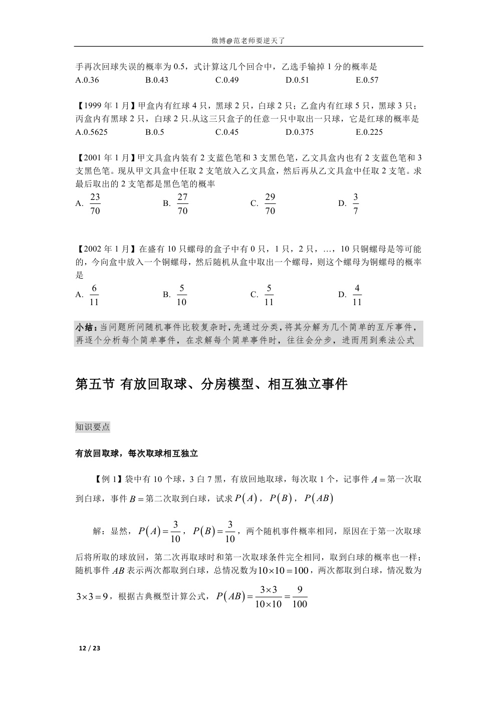 1997-2015管理类联考真题模块化归类(概率部分无解析版)(12)
