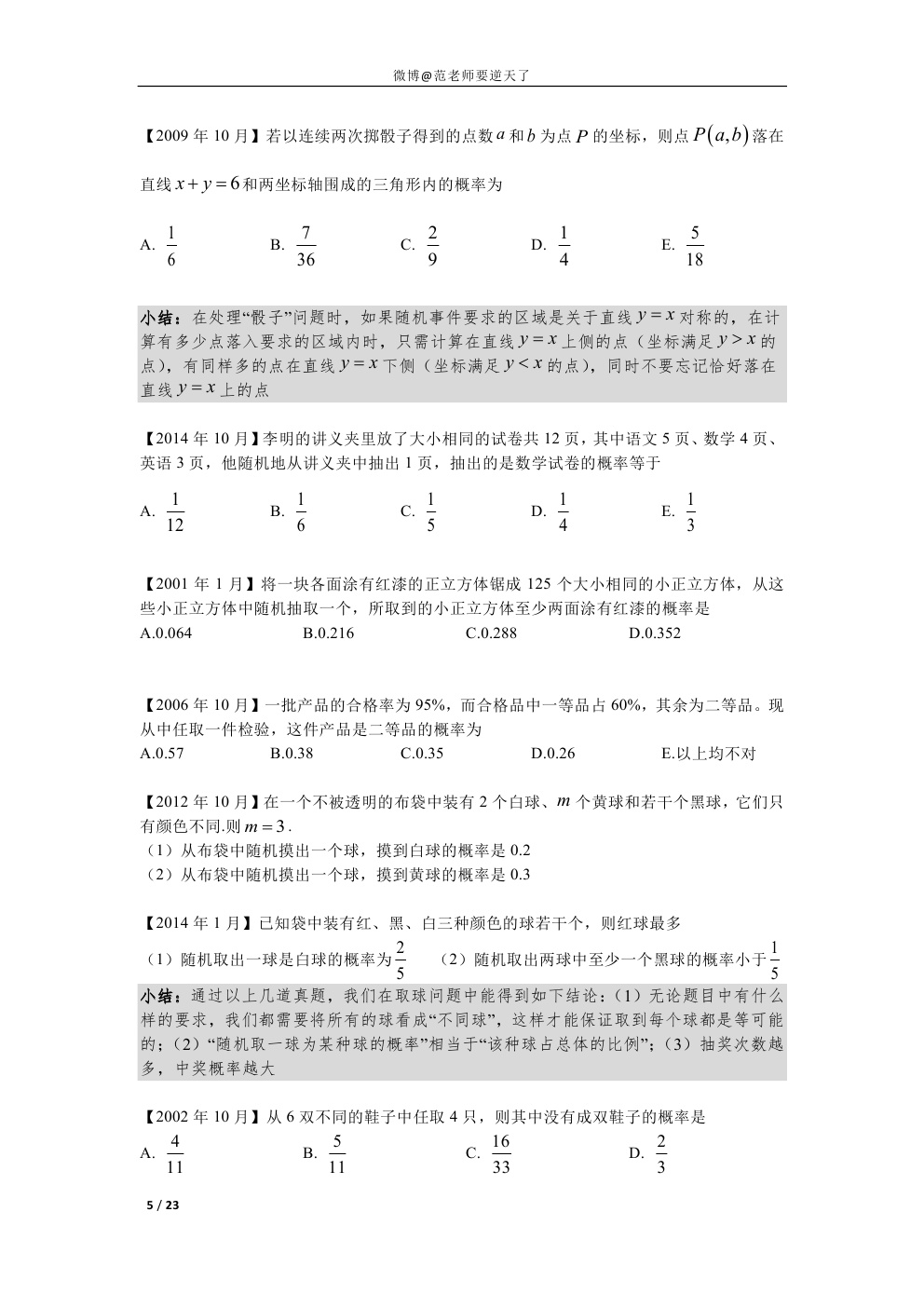 1997-2015管理类联考真题模块化归类(概率部分无解析版)(5)