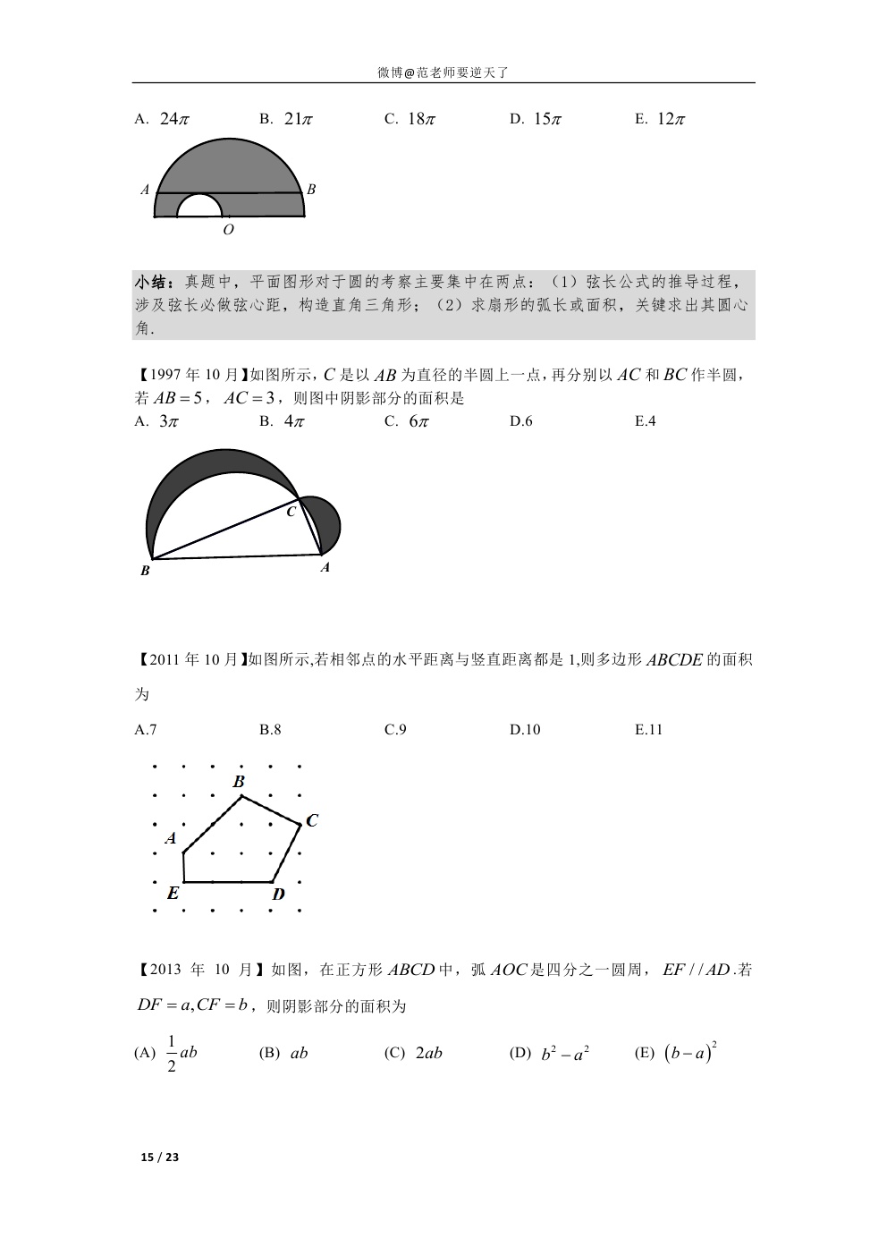1997-2015管理类联考真题模块化归类(平面图形&空间几何体部分无解析版)(15)