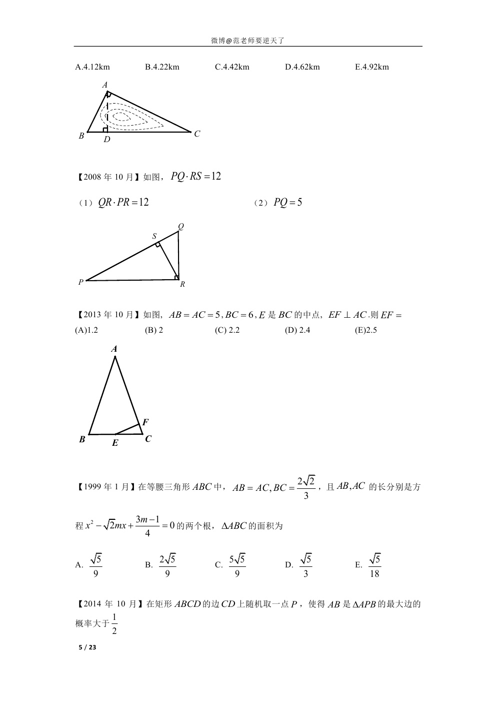 1997-2015管理类联考真题模块化归类(平面图形&空间几何体部分无解析版)(5)