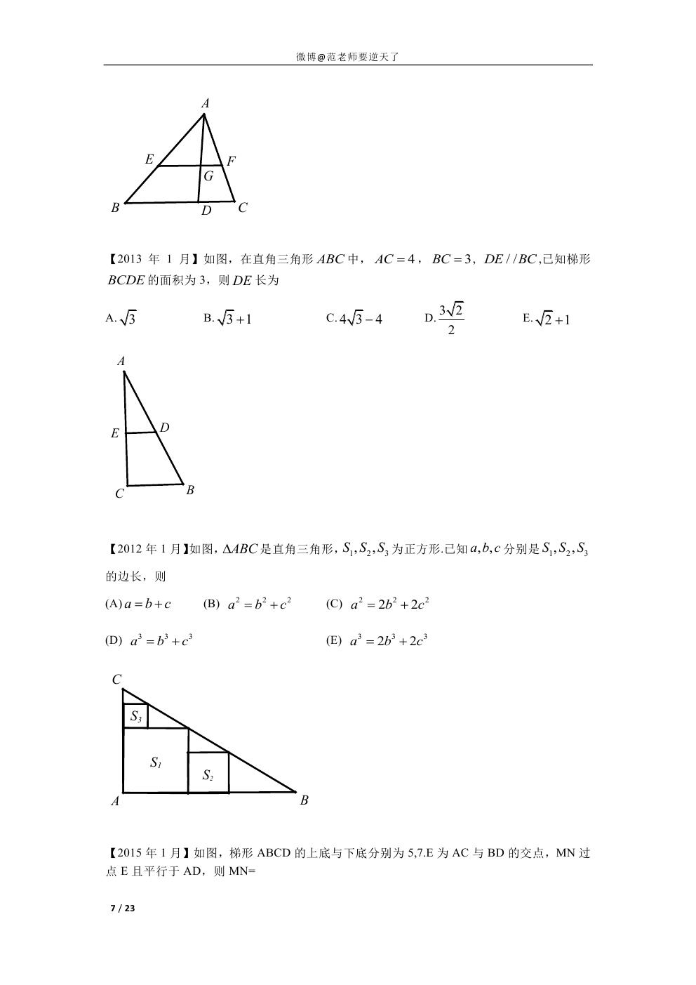 1997-2015管理类联考真题模块化归类(平面图形&空间几何体部分无解析版)(7)