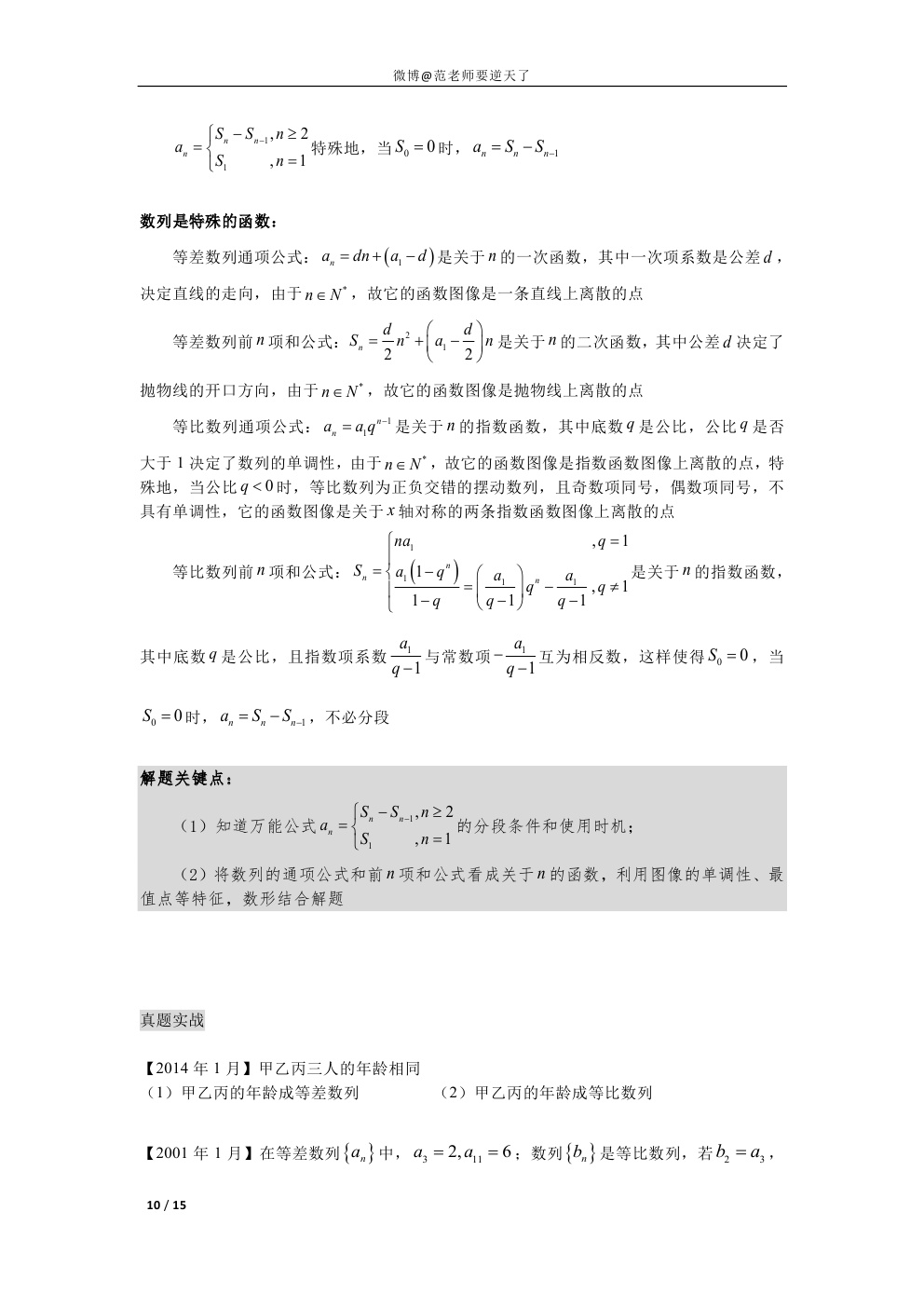 1997-2015管理类联考真题模块化归类详解(数列部分无解析版)(10)