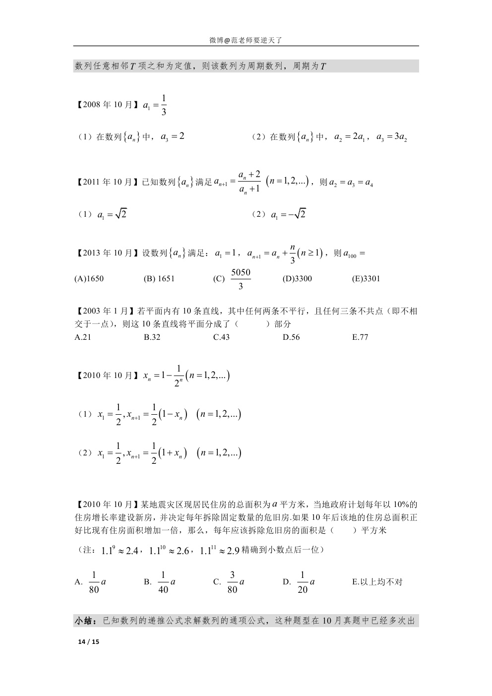 1997-2015管理类联考真题模块化归类详解(数列部分无解析版)(14)