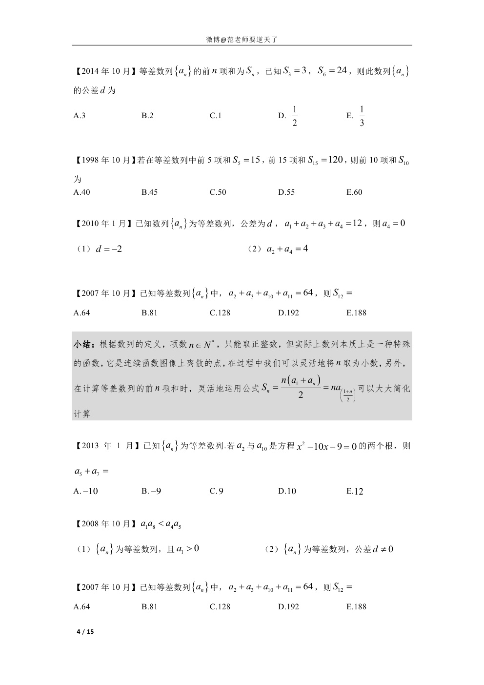 1997-2015管理类联考真题模块化归类详解(数列部分无解析版)(4)