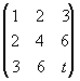 (A) t=9时, P的秩必为1 (B) t=9时, P的秩必为2 (C) t≠9时, P的秩必为2 (D) t≠9时, P的秩必为1 (E) t≠9时, P的秩必为3