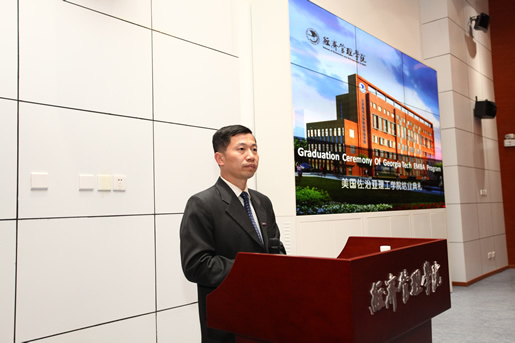 然后,北京邮电大学经济管理学院党委书记庄育锋上台致辞,首先他向来自佐治亚理工学院的师生表示热烈欢迎,并祝贺各位同学顺利完成“全球领导力之中国经商之道”的课程学习。在回顾总结了同学们这三天在北邮紧张而充实的学习之旅之后,他希望同学们在对中国的经济、企业、企业家有全新认知的基础上,在日后的工作中,对在华开拓或发展的项目,可以做出更好的判断和更准确的决策;在处理中国业务时,可以更好地与中国的合作伙伴共事;同时,对非中国业务也有一个重新的思考。最后,他期待中美之间、美国佐治亚理工学院和北京邮电大学之间有更多的合作交流。