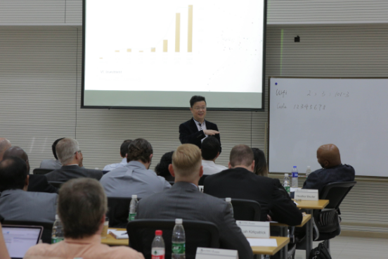 深圳创新谷孵化加速器创始合伙人朱波先生向EMBA管理科学班的同学讲授了《中国创业与投资环境》的课程。朱老师首先分析了当前中国的宏观经济情况和中美资本市场的区别,并介绍了中国的风险投资和私募股权投资的情况。随后,他重点介绍了中国VC市场,包括VC的行业分布情况,VC的地域分布情况以及在中国VC的撤销办法。在这部分,朱老师解答了美国同学们关于中美天使投资和各轮融资的区别、AI具体操作流程、天使投资人对创业者的筛选标准等问题上的诸多困惑。此外,他重点分享自己在天使投资过程中如何选择创业者和投资项目的经验,并提出TTP理论,即Trend (必须顺应市场的潮流),Thing (必须是人们使用率高的产品),People (衡量这个团队各部门人员的素质)。朱老师表示自己这些年非常鼓励年轻人和女性创业,并对相关优质项目给予支持。在课程的最后,一位同学主动陈述自己的AI项目,朱老师从天使投资人的角度就这个项目给出专业的评价和建议,互动实战环节使同学们对该课程的内容有了更直观的感受和学习。