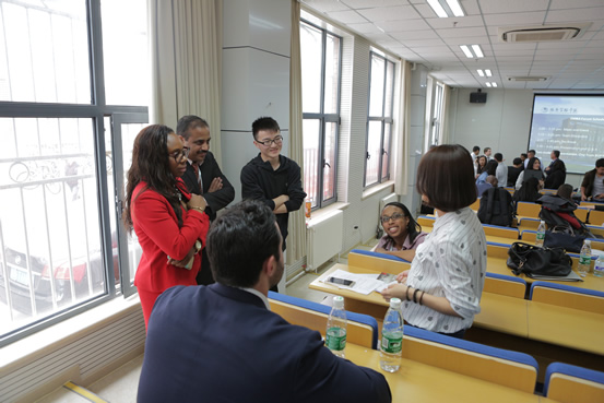 EMBA论坛在北邮经管楼的四个教室内同时进行。来自美国佐治亚理工学院的同学和北京邮电大学的同学共同参与了论坛,并就中美企业打开对方商业市场的问题进行了深入交流。各组针对本组案例展开热烈的小组讨论,同学们根据自己对本国商业市场的了解各抒己见,分析如李宁入驻美国运动产品市场失败、家得宝进入中国市场失败等商业案例,并共同提出解决方案。然后,每个小组各派两人(一名佐治亚理工的同学,一名北邮的同学)进行限时陈述和问答,现场气氛十分火热,来自北邮的同学见识了美国同学的批判思维,来自美国的同学也领略到中国大学生的商业思维。这次论坛不仅是智慧火花的碰撞,同时还增进了中美同学间的友谊。