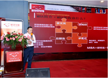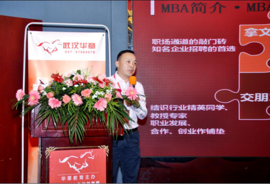 紧接着,武汉华章沈骞校长针对“MBA能收获什么?MBA笔试考哪些内容,考试难度有多大?毕业多年的我们如何成功备考?有工作有家庭,如何平衡去学习?华章教育是怎样的一家帮助大家考试的机构?”作了简明扼要的介绍,让考生更加清楚MBA的考试内容和方法。