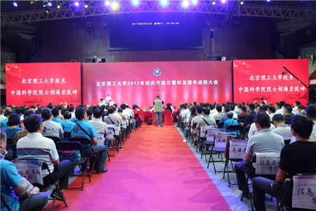 8点30分,大会正式开始。胡海岩校长致辞,对返回母校参加2017校庆开放日暨校友值年大会的校友表示了热烈的欢迎与衷心的感谢。胡校长指出,校庆开放日系列活动是紧密围绕学校“双一流”建设中人才培养、科学研究和队伍建设等多项目标,面向国家重大战略需求,主动适应国家发展的新形势新任务新需求,力求搭建学校与校友之间交流合作的平台,服务学校中心工作,助力校友进一步发展。同时期待校友们不负学校期待,在其所在行业、领域创新发展、拼搏进取,彰显北理工人特有的精神文明与力量。
