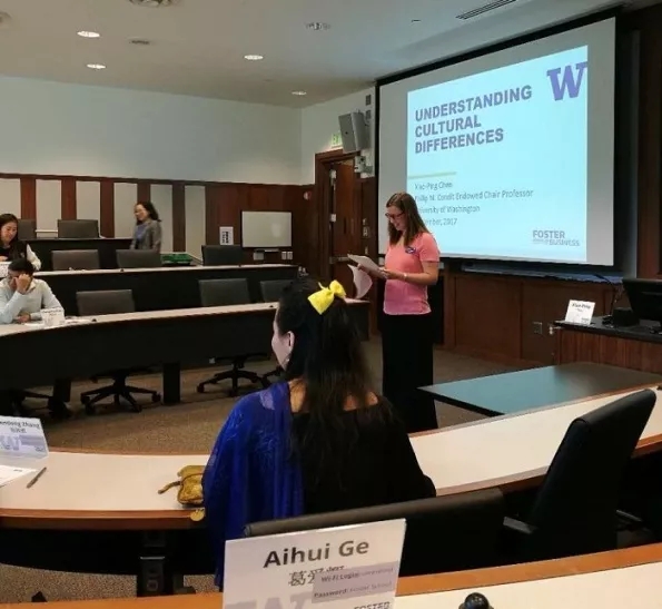 全球知名学府华盛顿大学(University of Washington)就坐落在这座清丽文艺的城市。同学们有幸聆听由UW福斯特商学院组织管理系主任陈晓萍老师讲授的跨文化领导力的课程。陈老师是华盛顿大学终身教授,致力跨文化管理研究,她用简明的语言将不同的文化加以区隔,指出不同的文化差异表现在两个层次:一是外在可观察到的行为语言,比如距离感、手势的意义、时间概念等,另一个层次是内在价值观的不同,比如个体主义和集体主义的区别等。管理者在跨文化情境下进行经营管理活动时,要及时洞察、敏锐识别跨文化环境中的具有文化独特性的各类信息,通过自我主动学习和积极调适,迅速获得与之相适应的领导行为的能力和特征。