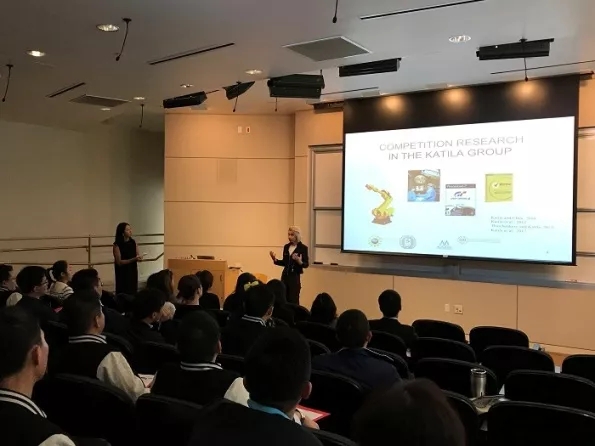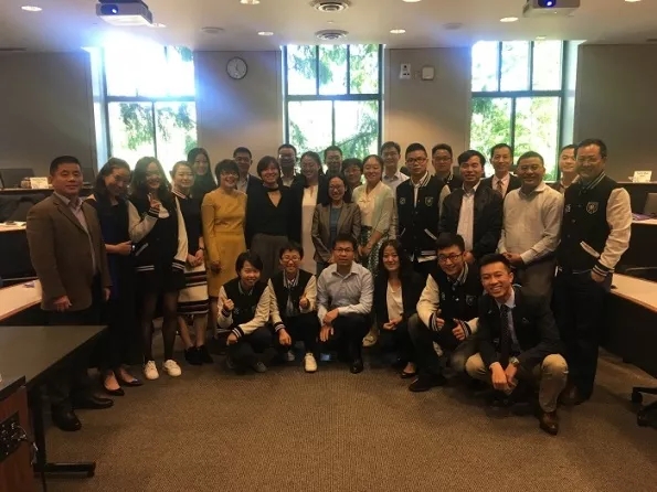 在这所全世界学子梦寐以求的百年名校课堂上,斯坦福大学管理科学与工程学院专职教授、W.M.凯克基金会的杰出学者、美国管理学会技术和创新管理部主席、战略管理学会顶级战略学者Riitta Katila为大家讲授了一堂开发新思维的综合课程,Riitta Katila教授是目前“创新战略理论和创新商业模式引发新市场”研究领域的最前沿学者,她向大家介绍传统企业如何创新转型,把传统企业与国际形式和未来发展联系到一起,启发大家怎样在新形势下为企业定位发展的战略思维,通过五力分析模型分析出自己所在行业的竞争环境,确定潜在竞争对手,避免盲点,让人受益匪浅。课程结束后,校方为每位同学精心准备了斯坦福大学的校服,大家身着校服合影留念。