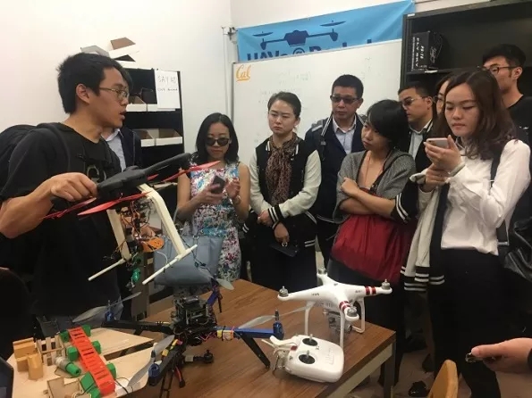 最先迎接同学们的是一位在伯克利作电池续航技术研究的博士后涂青松先生,他带领大家参观美丽的校园,走访图书馆,教学大楼以及几个重点院系,详细介绍了伯克利的发展史。在无人机(UAV)实验室,有幸和正在作研究的学生们进行了近距离的交流。