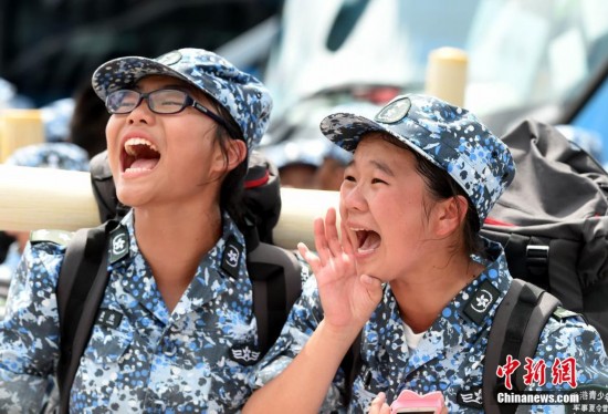 7月27日,第十届香港军事夏令营在解放军驻港部队新围军营举行结业典礼,260名香港中学生,结束了15天的军营生活,顺利结业。香港青少年军事夏令营由解放军驻港部队、香港特区政府教育局、香港军民同乐活动筹委会和德育关注组共同举办,目前已经连续举办了十届,共有大约2000名香港青少年学生参加。图为女学员离营前大声呼喊教官的名字。中新社发 张宇 摄