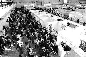 12月9日,“2017年北京地区毕业研究生专场招聘会”在国展老馆举行(见图)。作为今年最大规模的一场招聘会,主办方一口气包下国展的5个馆,704家用人单位组织现场招聘,提供就业岗位1.6万个。当天吸引近2万名毕业生进场,现场达成就业初步意向近7000人次。
