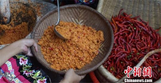 苞谷酸是湖南湘西的特色调味料,手工玉米磨粉加红辣椒冲兑密封发酵而成,类似“老干妈”,在湘西当地很受欢迎,每家每户都会制作。