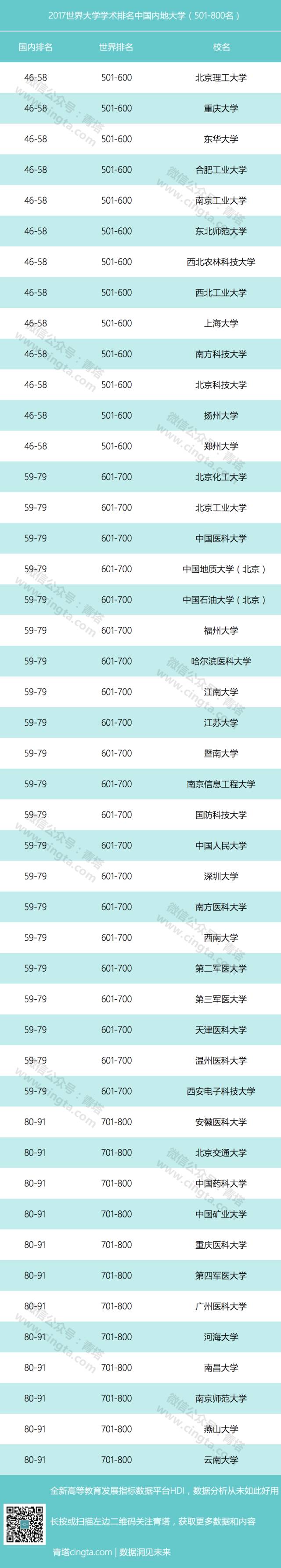 46所内地高校入选500强潜力高校名单