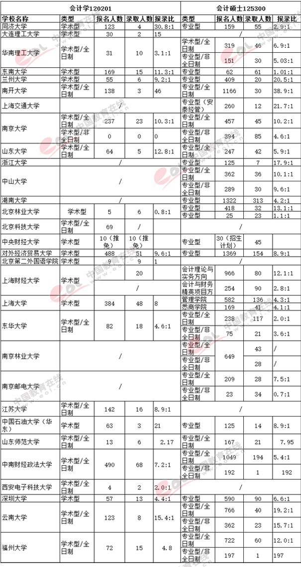 2019考研报考指导:会计专业2017年报录比数据