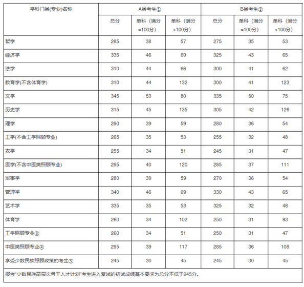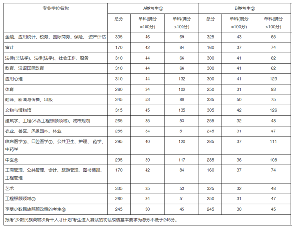 2017年全国硕士研究生招生考试考生进入复试的初试成绩基本要求(专业学位类)
