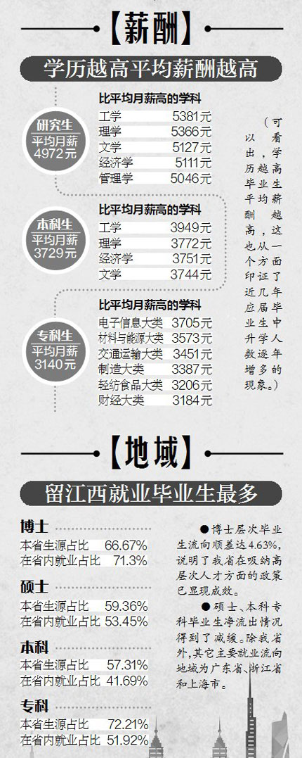 江西高校毕业生“薪情”怎么样?哪些专业最好找工作?毕业生选择创业的多不多?江西大学生最喜欢到哪些城市工作?