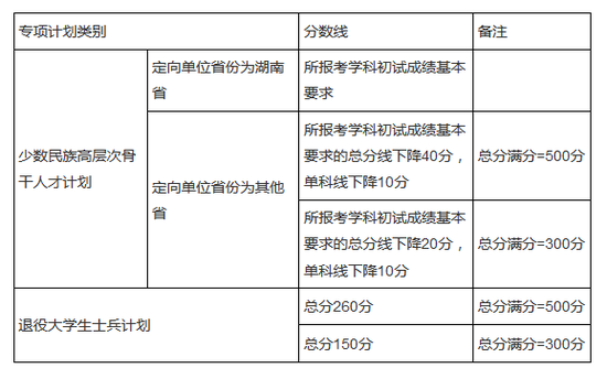 5。工作单位在国务院公布的民族区域自治地方,且定向就业原单位的少数民族在职人员考生,可在相应学科分数线基础上总分降5分或一门单科降5分。符合条件的考生于3月14日前向湖南大学研究生院招生办公室提出书面申请。