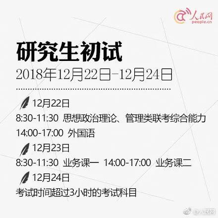 ②12月22日~12月24日初试,上午8:30~11:30、下午14:00~17:00。