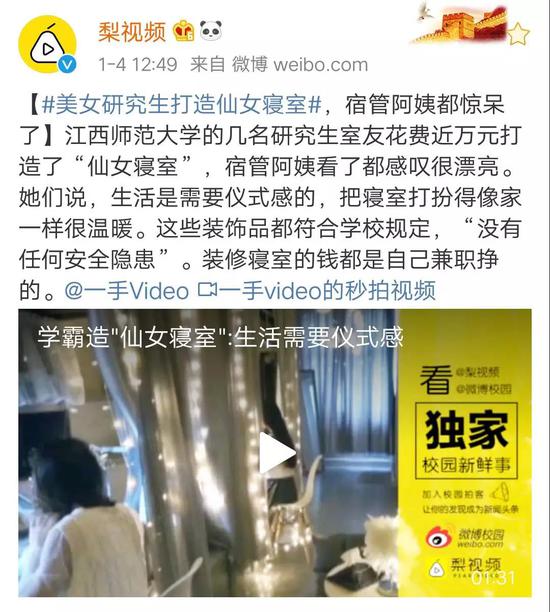 近日,“仙女寝室”引发网络关注。