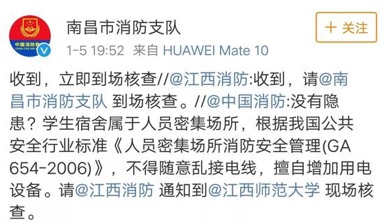 @江西消防 收到消息后迅速给出回应,并且请@南昌市消防支队 到现场核查。