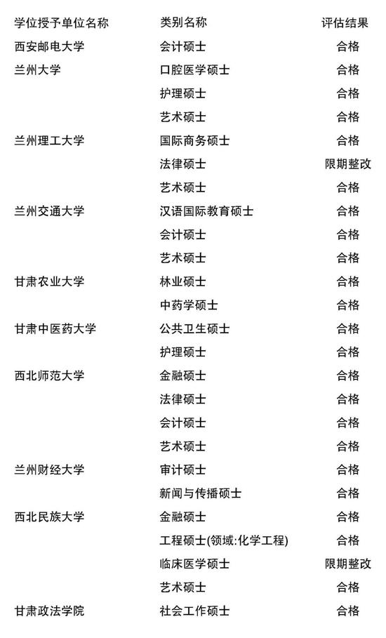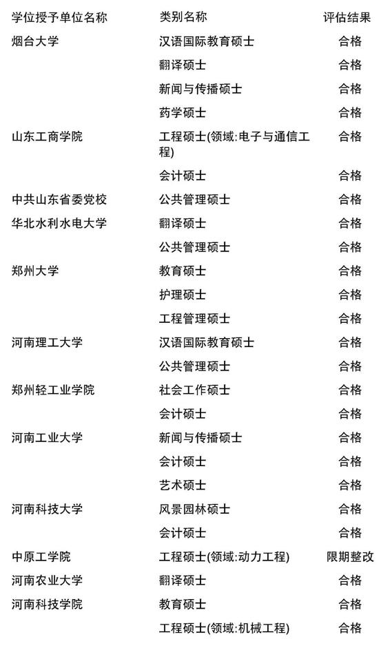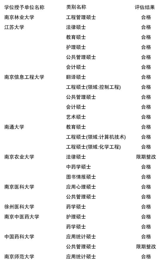 根据国务院学位委员会和教育部下发的通知,评估结果为“合格”的学位授权点,可继续行使学位授权。评估结果为“限期整改”的学位授权点,自发文之日起进行为期2年的整改,2019年招生工作结束后暂停招生。整改结束后接受复评,复评结果为“合格”的恢复招生,复评结果达不到“合格”的撤销学位授权。