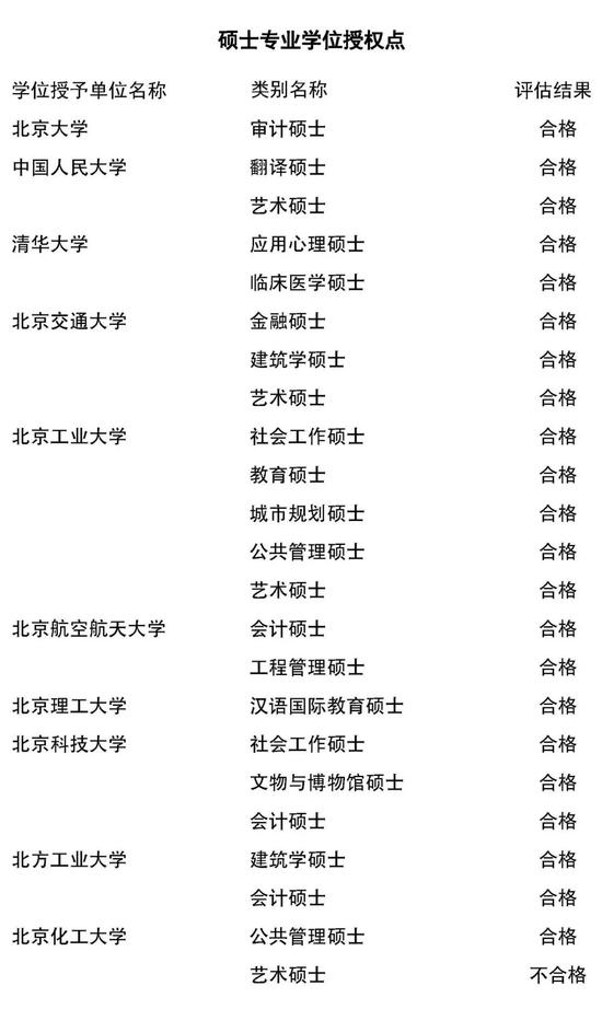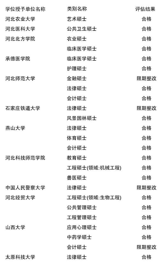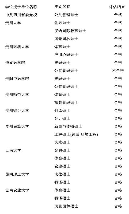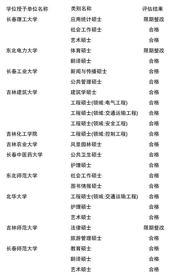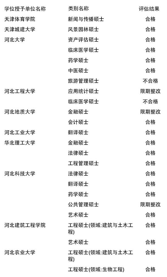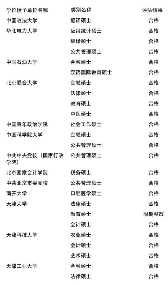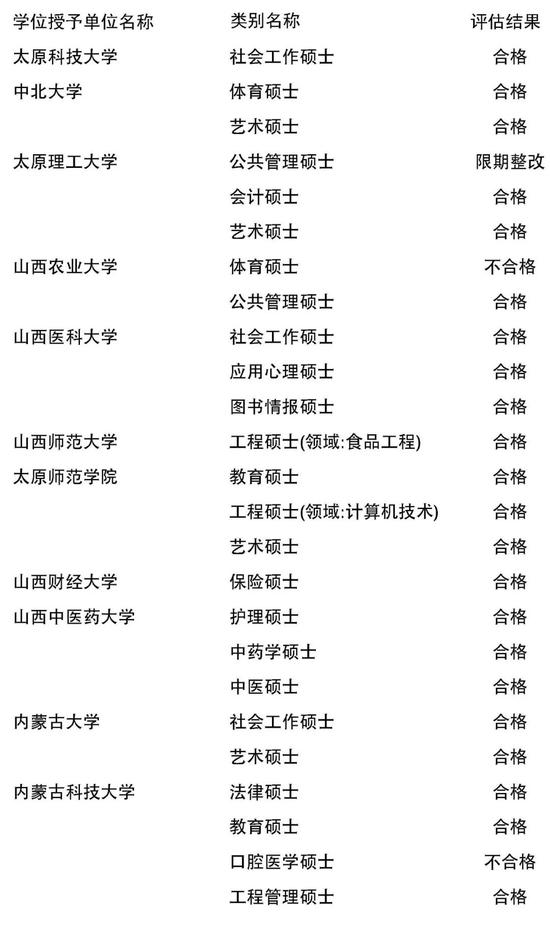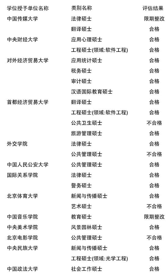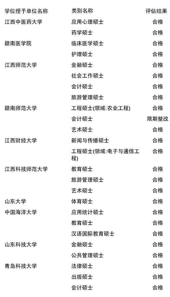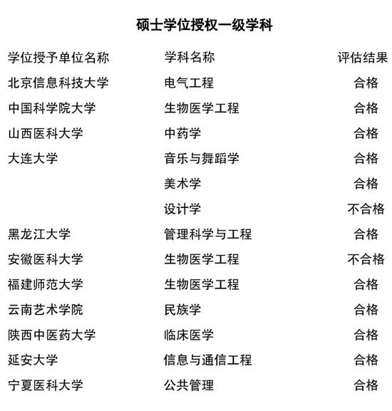 结果显示,不合格学位点共有31个,全部为硕士学位点;限期整改学位点共有43个。此外,共有18所高校主动放弃学位点18个。