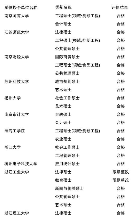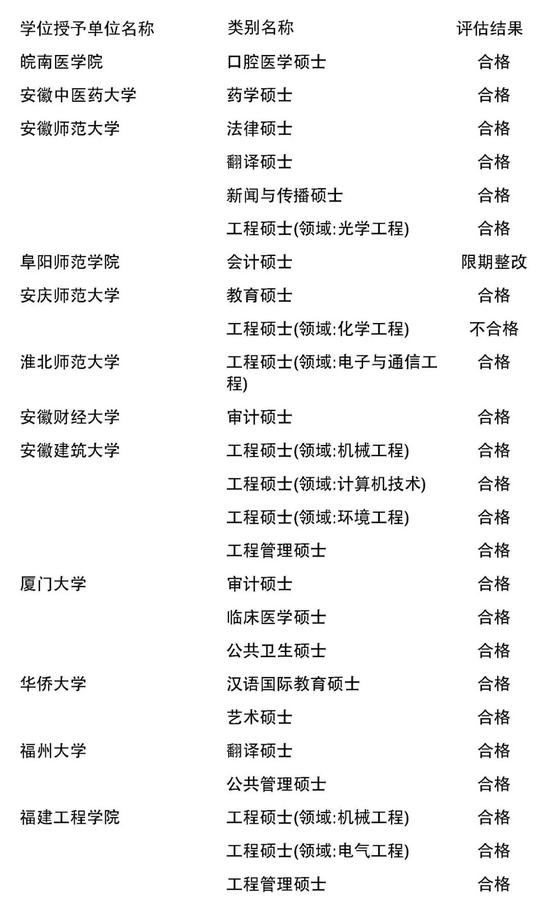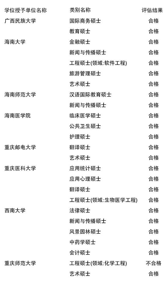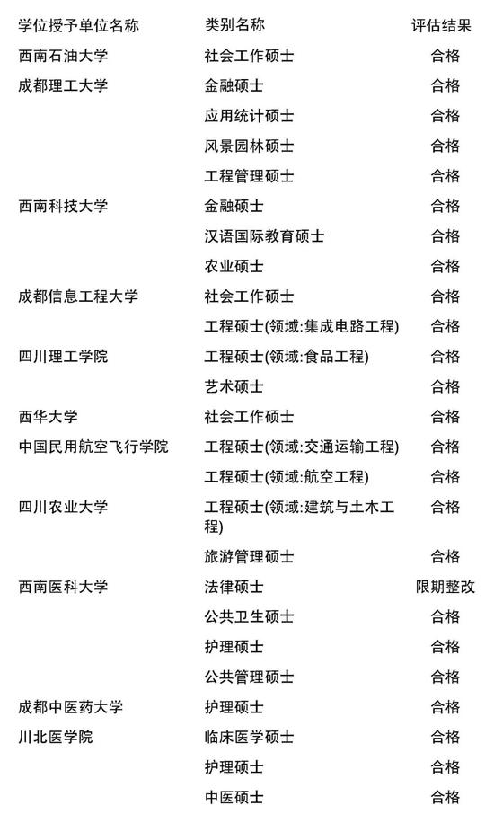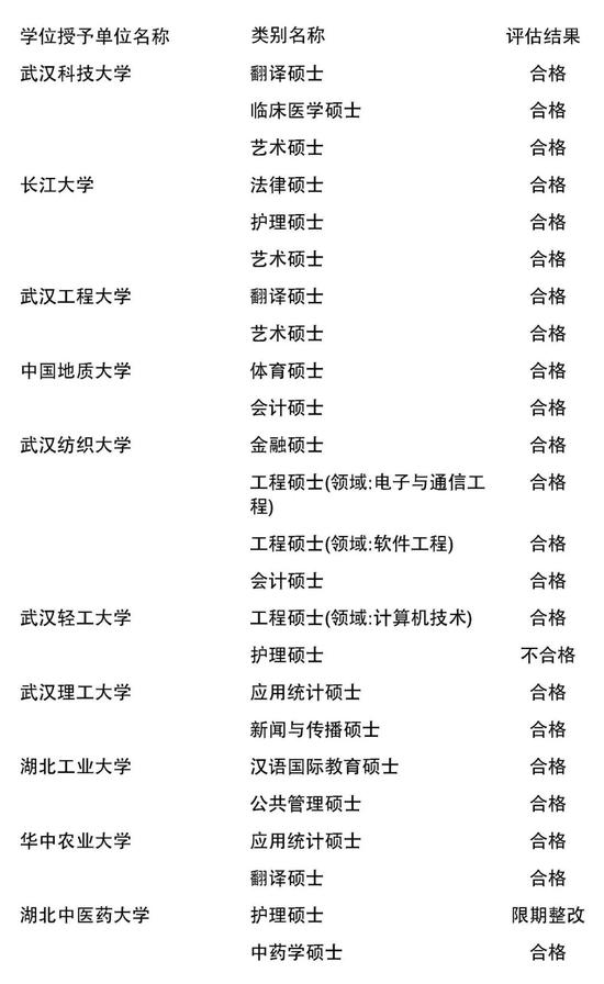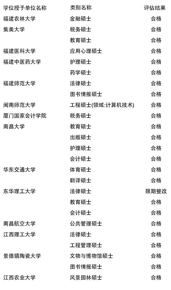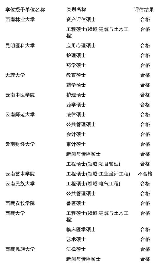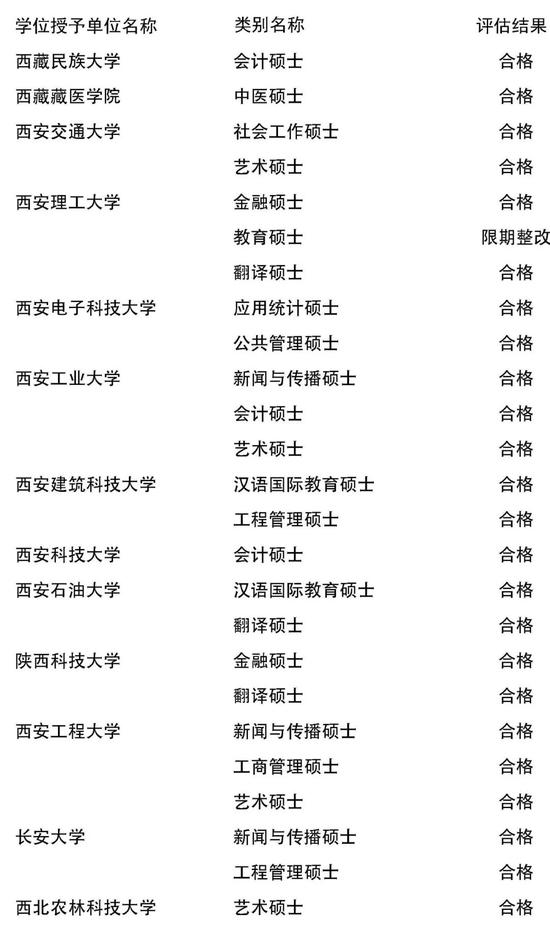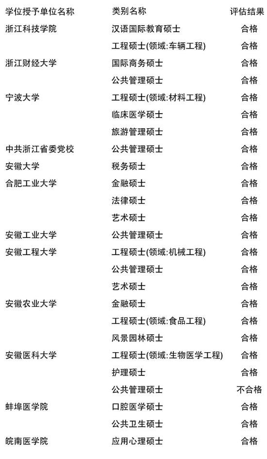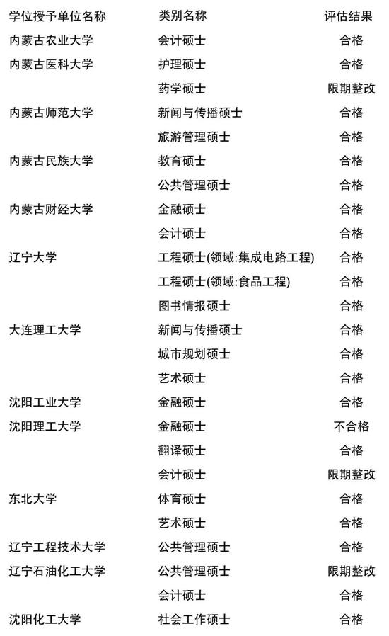 结果显示,不合格学位点共有31个,全部为硕士学位点;限期整改学位点共有43个。此外,共有18所高校主动放弃学位点18个。