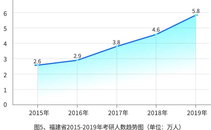 同样考研人数近几年翻番的还有四川省、广东省、福建省等多个省份。