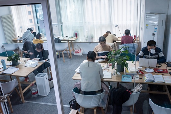 11月21日,刘同学在北京亦庄的一家自习室内。正在备考法律硕士的她每天在这里学习超过10个小时。