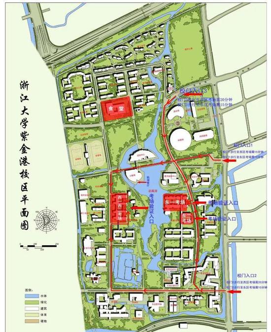 紫金港校区离市中心较远,考生可乘坐公交车到浙大紫金港校区站下车。地铁坐2号线至虾龙圩站(地铁5号线浙大紫金港站目前还无法进入校园,请不要坐到此站)下车。虾龙圩站步行至校门口约15分钟。从校门口行走至东一东二考场约需15分钟,至西一西二考场约需25分钟(三个校门时间略有差异,详见紫金港校区平面图),请预估足够时间提前量。西溪校区处于市中心,公交站较多,请自行查询公交车。西溪校区校门口步行至田家炳书院约需15分钟(详见西溪校区平面图)。本考点考生过万人,考务人员约八百人。届时学校不提供停车位,校园外面停车位也有限。西溪校区面积小且地处市中心,校园周边完全没有停车位。为避免进出校园拥堵及停车困难等导致考试迟到,考生切勿自驾前往。