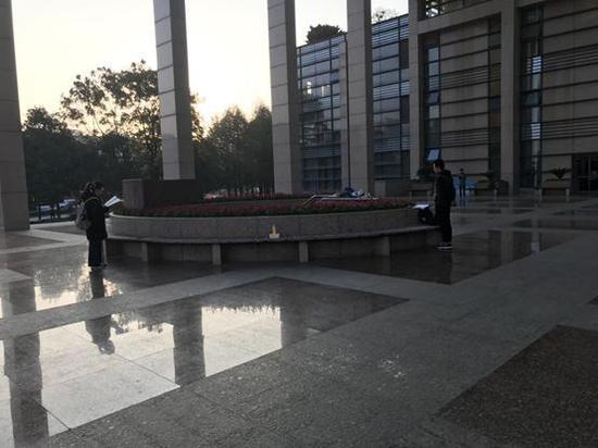 杭州的冬天天气阴冷,清晨虽有阳光但温度极低,在寒风中瑟瑟发抖等待图书馆开门的考研学子们早就拿出书来埋头苦读。