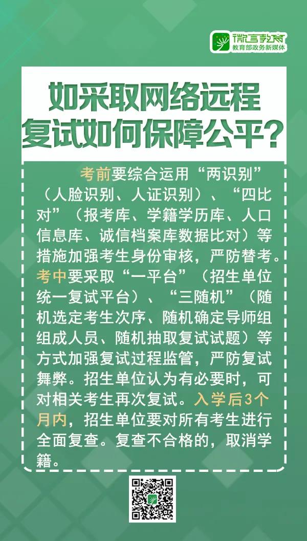 考研新闻 本站小编 免费考研网 2020-04-22受疫情影响,今年的研究生复试推迟了。而随着教育部公布研究生复试工作部署方案,各招生单位研究生复试工作正紧锣密鼓地开展起来。方案的公布既为高校做好研究生复试工作提供了指南,也间接回应了公众对研究生复试的关注,明确了举办复试的必要性。研究生考试招生是国家选拔高层次专门人才的重要途径,复试是研究生招生考试 ...