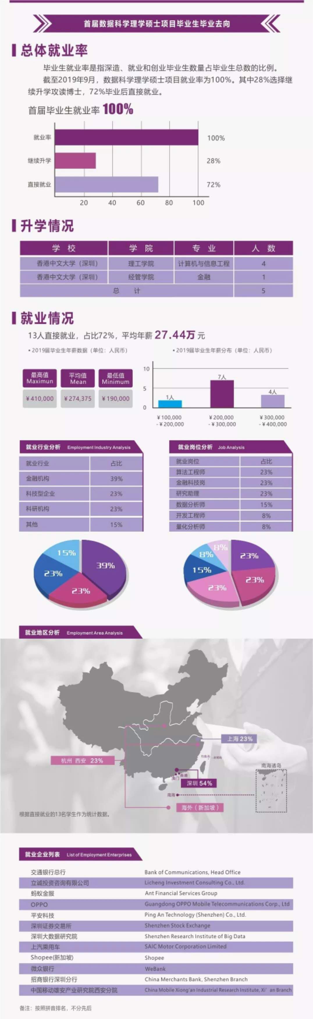 大数据就业前景怎么样?以香港中文大学(深圳)2019届数据科学理学硕士毕业生就业情况为例。