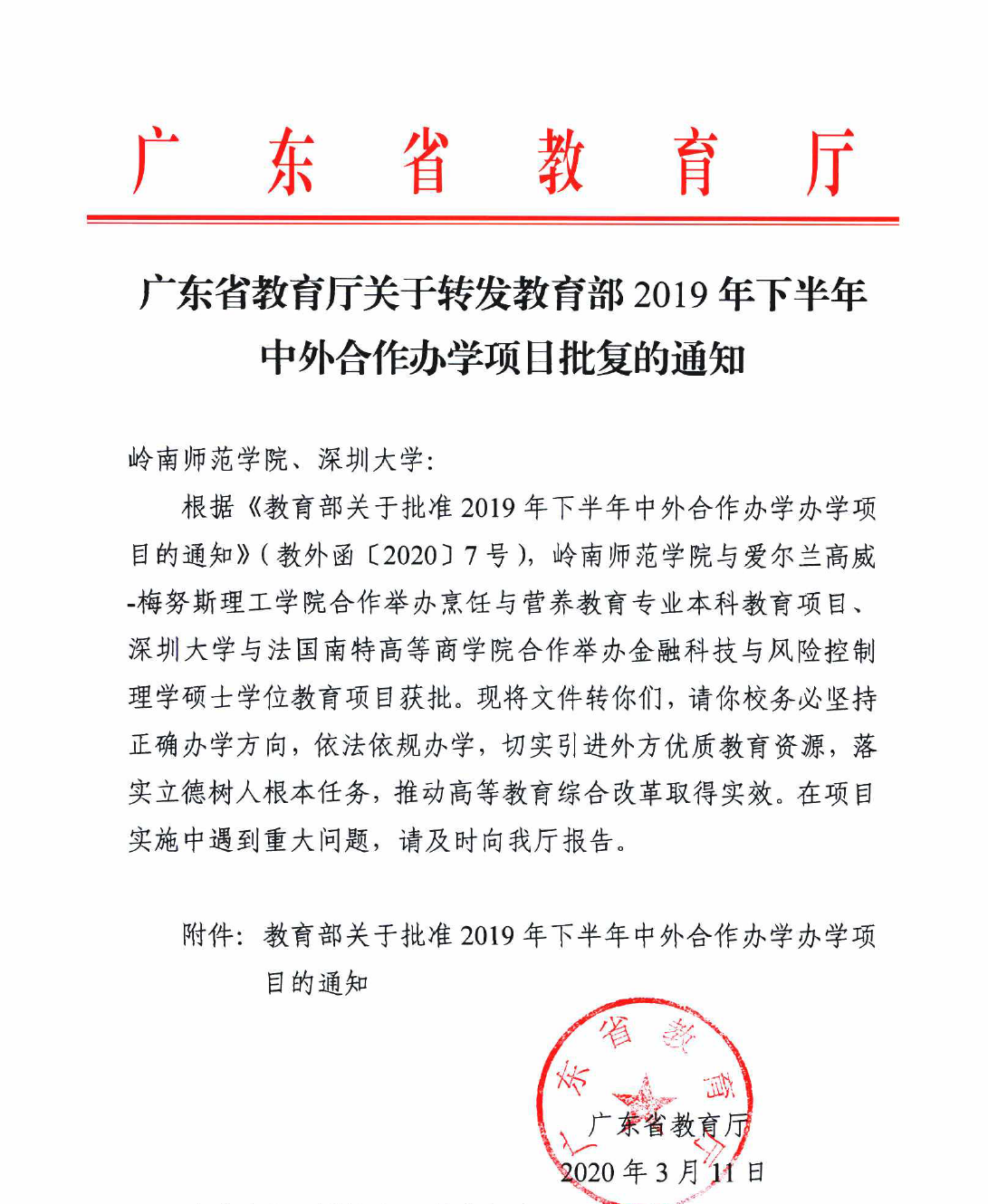 深圳大学与法国南特高等商学院2020级中外合作办学项目