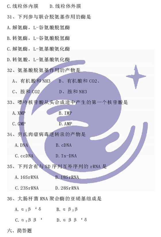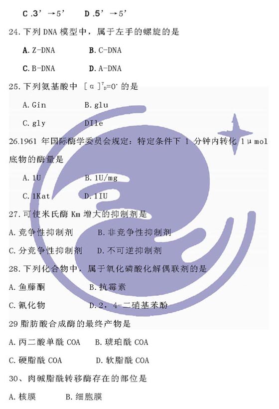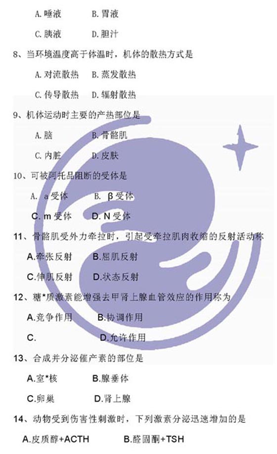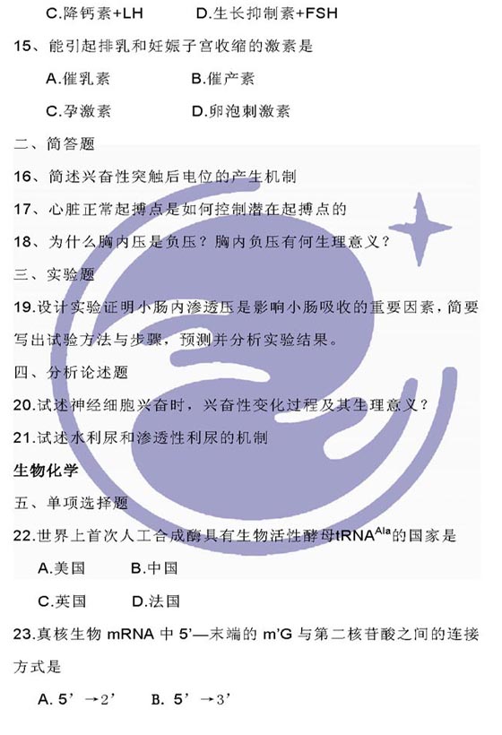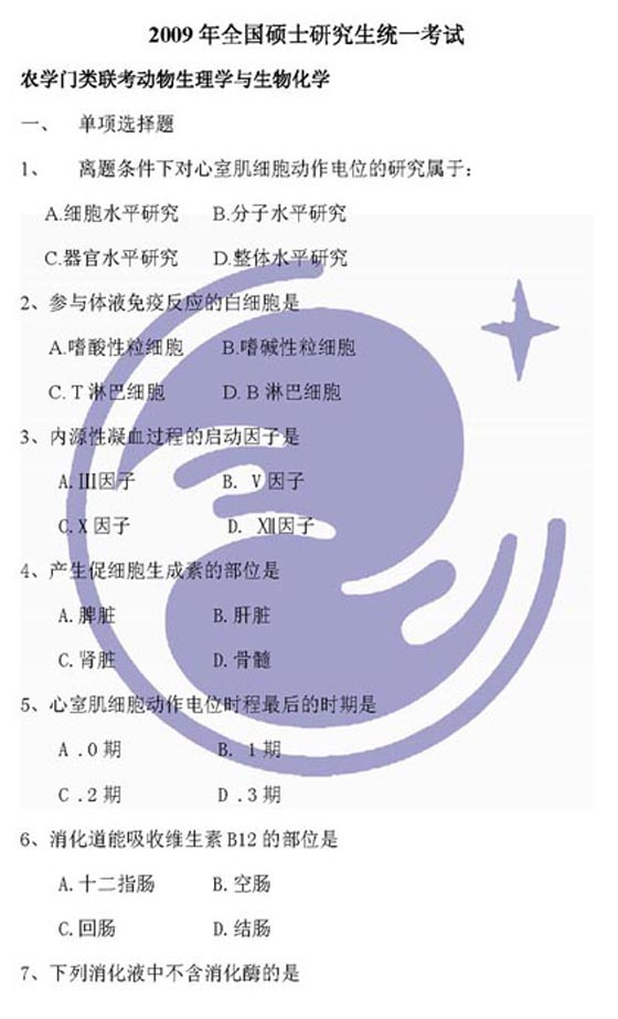 2009年农学考研统考动物生理学与生物化学试题
