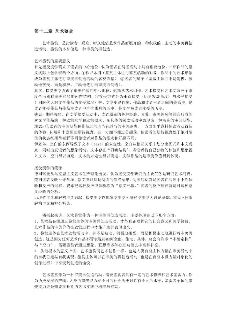 王宏建《艺术概论》考研笔记 目录: 第一章 艺术本质论 第二章 艺术门类论 第三章 艺术发展论 第四章 艺术创作论 第五章 艺术作品论 第六章 艺术接受论 第一章 艺术本质论 第一节 艺术的社会本质 本质,是事物的根本性质以及此一事物同其他事物的内部联系。 社会性是艺术的首要本质 ...