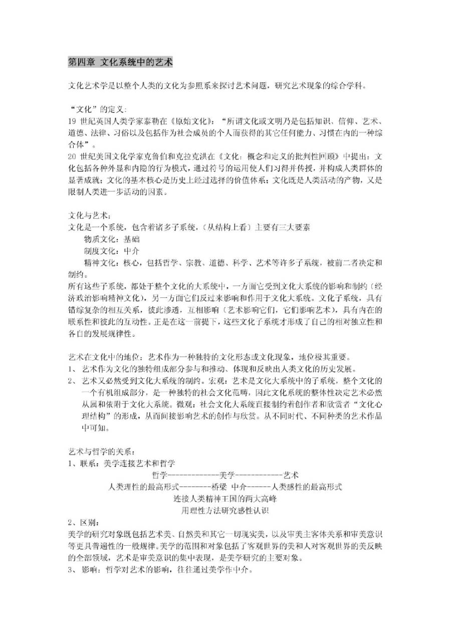 王宏建《艺术概论》考研笔记 目录: 第一章 艺术本质论 第二章 艺术门类论 第三章 艺术发展论 第四章 艺术创作论 第五章 艺术作品论 第六章 艺术接受论 第一章 艺术本质论 第一节 艺术的社会本质 本质,是事物的根本性质以及此一事物同其他事物的内部联系。 社会性是艺术的首要本质 ...