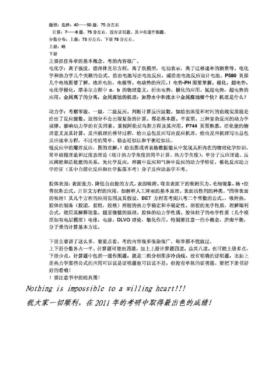 专业课考研资料 本站小编 免费考研网 2015-12-06南京工业大学2015年硕士研究生物理化学复试试题