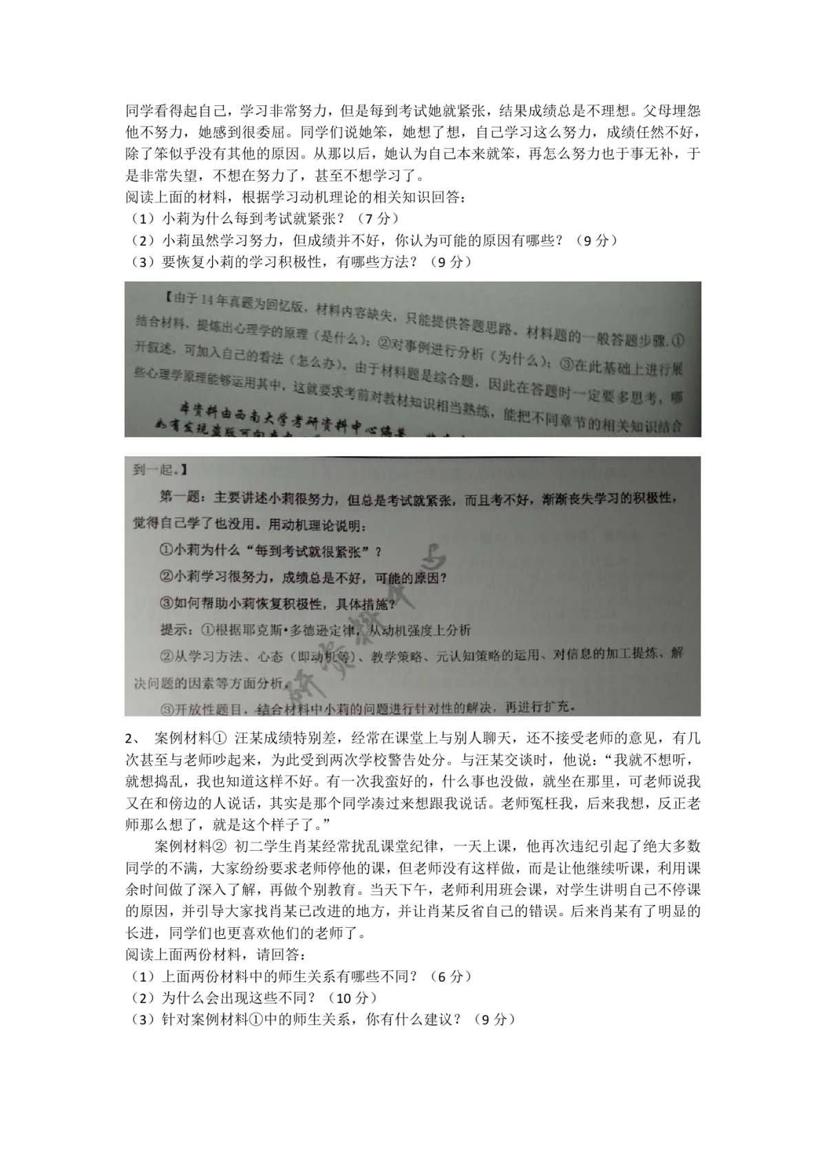 • 2016年考研心理学考试真题(简答+综合)