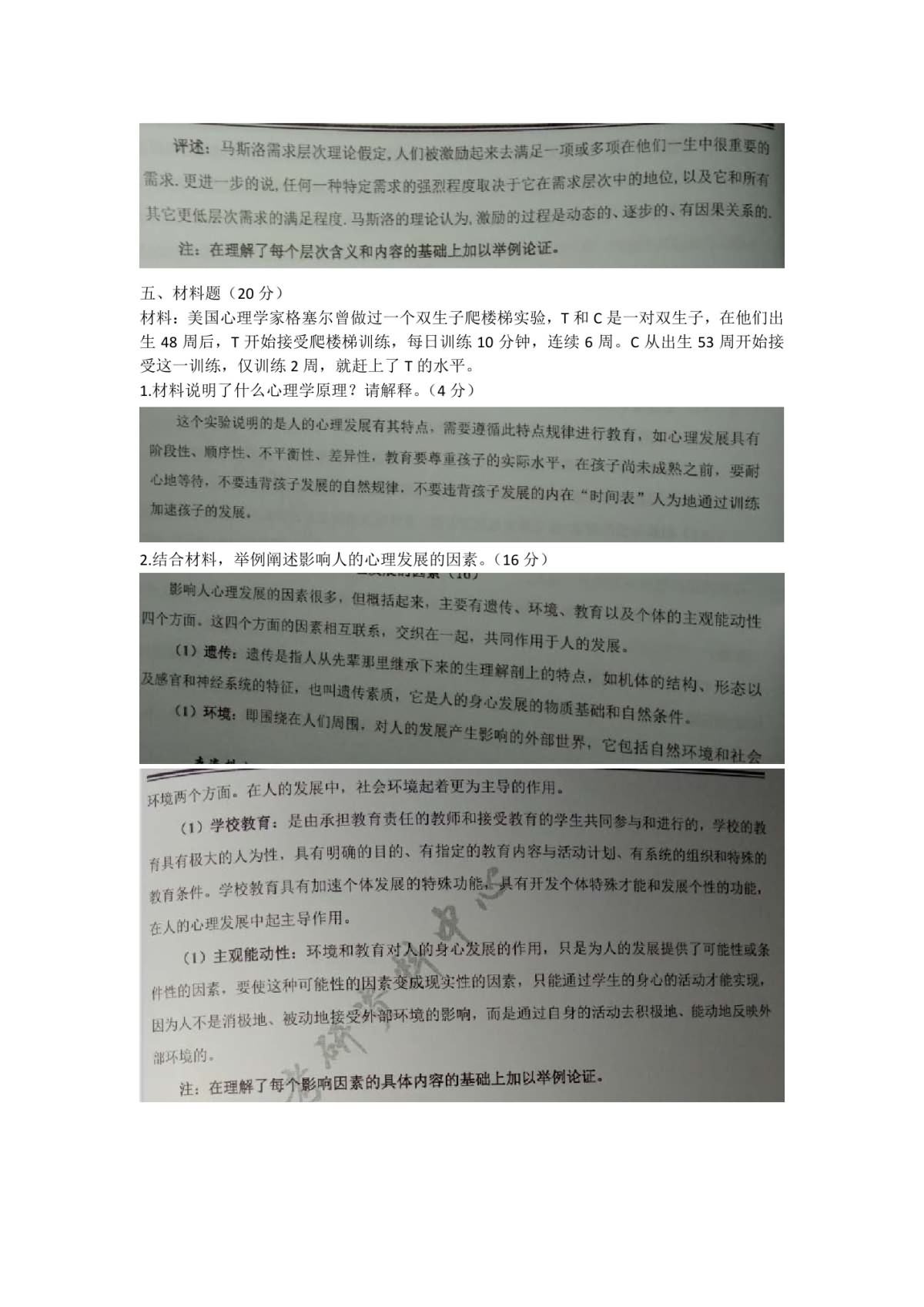• 2016年考研心理学考试真题(简答+综合)