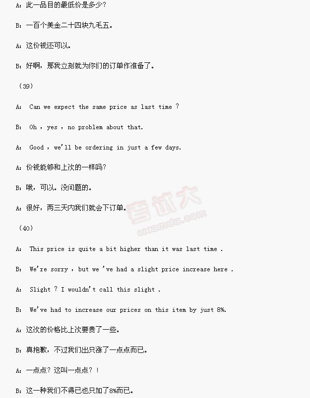B:那好,我们来看看你的报价吧。