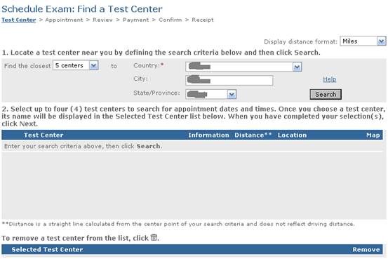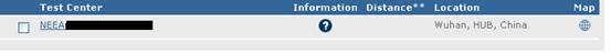 确定好Country,city,province后,点击search,会出现搜索到的考点: