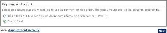 选中“This allows NEEA to send PV payment auth (Remaining Balance: $US 250.00) “,点击next,然后出现: